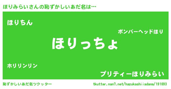 | ヘコむあだ名 | 『レバニラ』『ほりみらい(遠い目)』 |