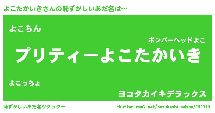 | 胡散臭い通販商品みたいなあだ名 | 『億万長者になれる霊験あらたかなお札…その名も「よこたかいき」』 |