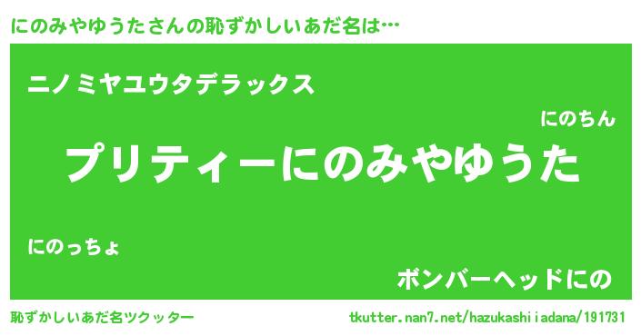 | 男性向けラノベタイトル風あだ名 | 『にのみやゆうたの憂鬱』 |