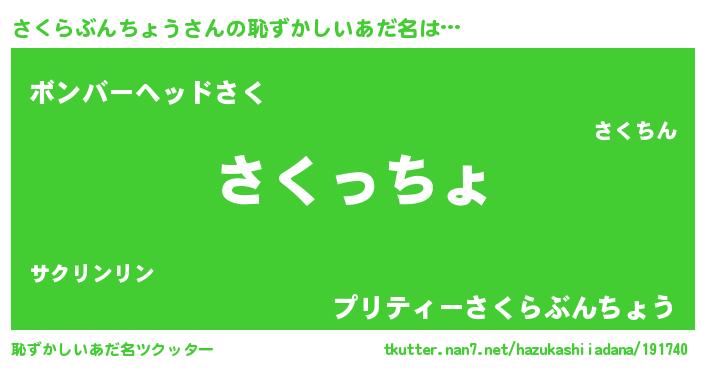 | 意味不明あだ名 | 『さくらぶんちょうフォーエバー』 |