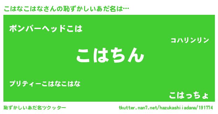 | ヒーロー風カッコイイあだ名 | 『ネオコハナコハナ』『天弓騎士コハ』 |