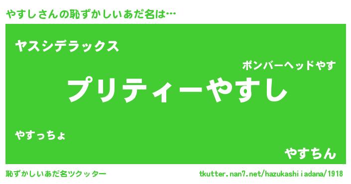 | ヒーロー風カッコイイあだ名 | 『スーパーヤスシ』『究極戦士ヤスシ』 |