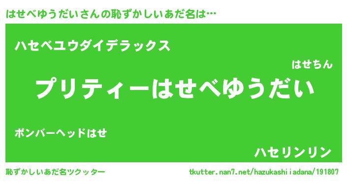 | 意味不明あだ名 | 『ペロリンはせべゆうだい』 |