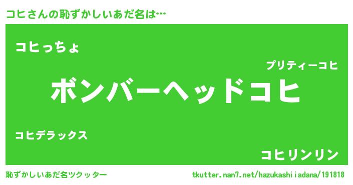 | ヒーロー風カッコイイあだ名 | 『正義の使者コヒ』『ウルトラコヒマン』 |