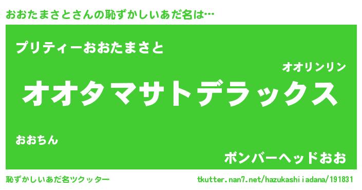 | ヒーロー風カッコイイあだ名 | 『究極戦士オオタマサト』『黄金騎士オオ』 |