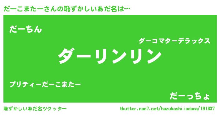 | ヘコむあだ名 | 『だーを』『だーこまたー(笑)』 |