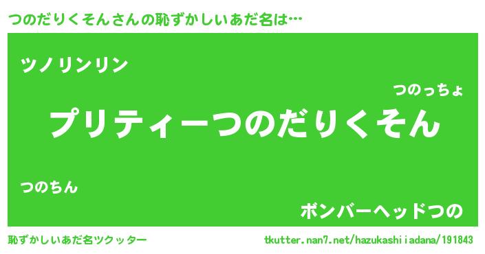 | 男性向けラノベタイトル風あだ名 | 『つのだりくそんの憂鬱』 |