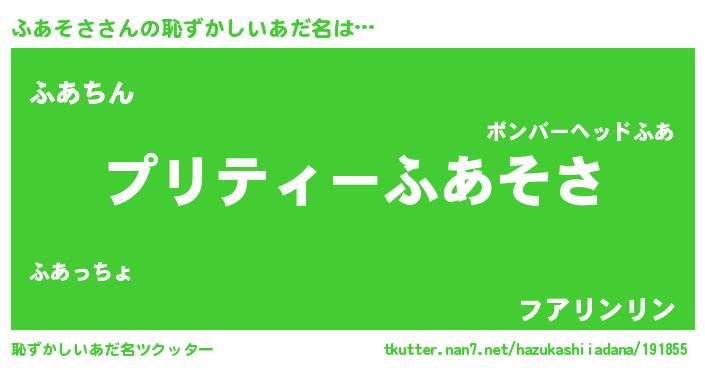 | 意味不明あだ名 | 『ペロリンふあそさ』『永久保存ふあそさ』 |