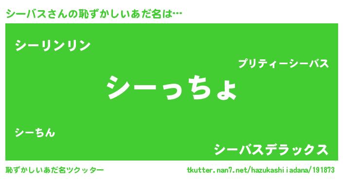 | 男性向けラノベタイトル風あだ名 | 『この素晴らしい世界にシーバスを!』 |