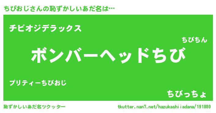 | ヒーロー風カッコイイあだ名 | 『天空の使者ちびおじ』『ネオチビオジ』 |