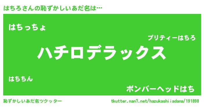 | ヒーロー風カッコイイあだ名 | 『究極戦士ハチロ』『ウルトラはちろマン』 |