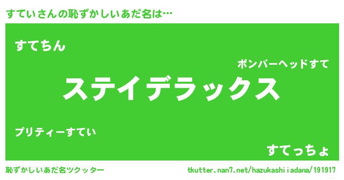 | 意味不明あだ名 | 『自称すてい』『永久保存すてい』 |