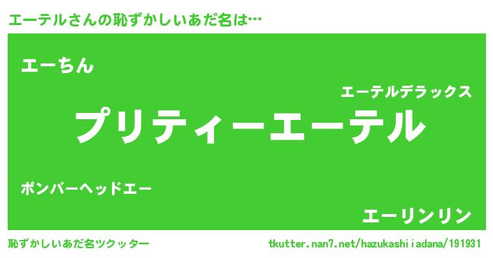 | ヘコむあだ名 | 『エーにゅー』『エーテル(震え声)』 |