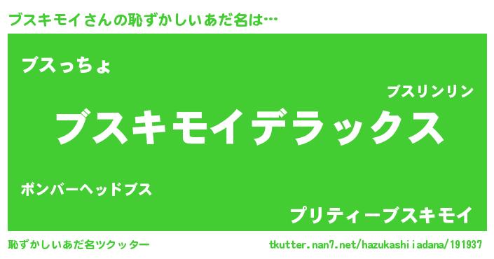| 女子向けラノベタイトル風あだ名 | 『ブスキモイが死なない童話 林檎のブスキモイの診療簿』 |