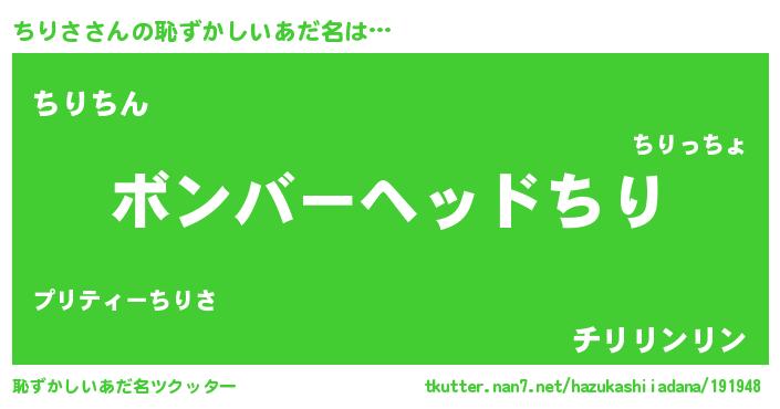 | ヘコむあだ名 | 『ちりさ(爆)』『ちりっちょ』『豆乳』 |