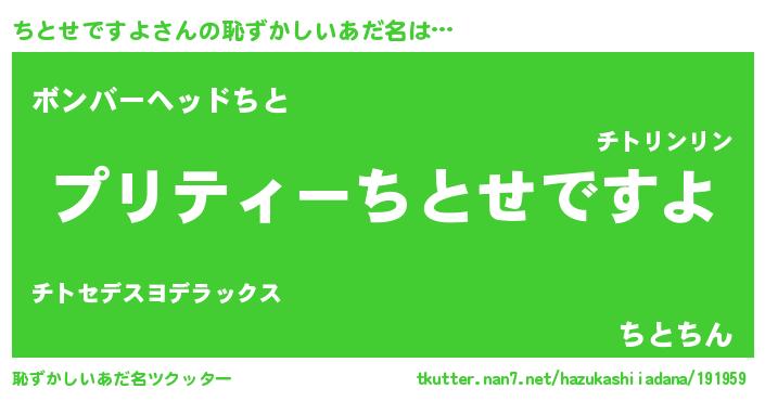 | ヘコむあだ名 | 『ちとにー』『ちとせですよ(震え声)』 |