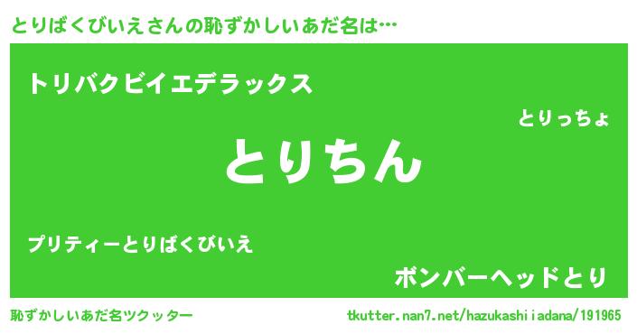 | ヒーロー風カッコイイあだ名 | 『仮面トリダー』『ネオトリバクビイエ』 |