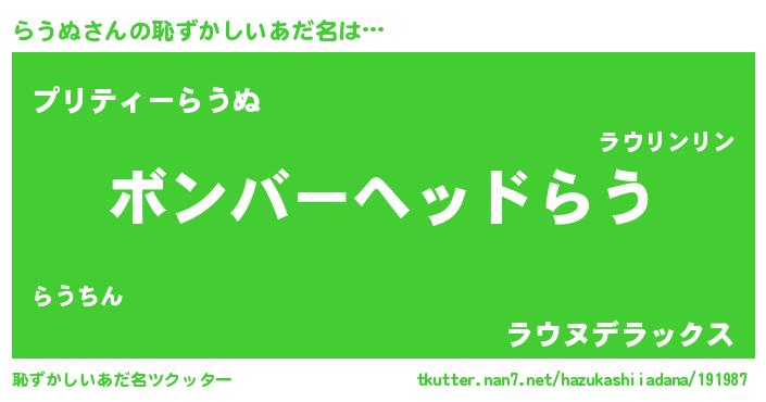 | 意味不明あだ名 | 『眠気覚ましガムらうぬ味』『自称らうぬ』 |