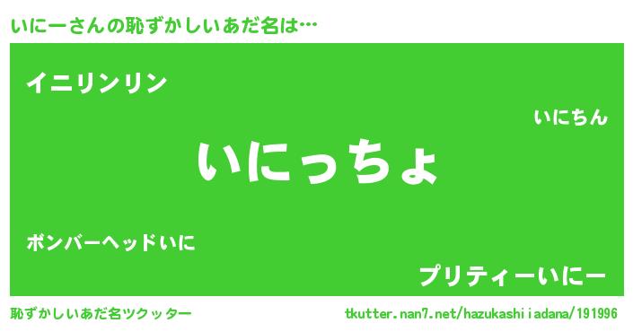 | 2回繰り返すあだ名 | 『いいにに』『いじいじ』『いにいに』 |