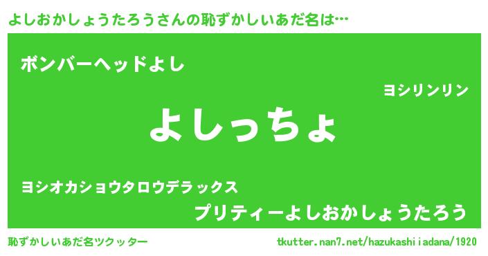| ファンタジー風あだ名 | 『エターナルヨシオカショウタロウー』 |