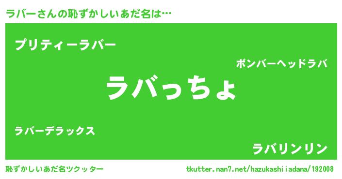 | ヘコむあだ名 | 『酢こんぶ』『ラバふぇ~』『ラバを』 |