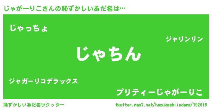 | 意味不明あだ名 | 『永久保存じゃがーりこ』 |