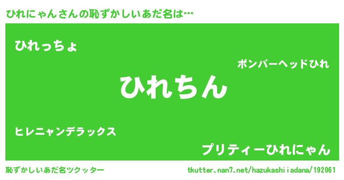 | 意味不明あだ名 | 『住所不定無職ひれにゃん(9歳)』 |