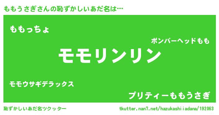 | 意味不明あだ名 | 『とにかく怪しいももうさぎ』 |