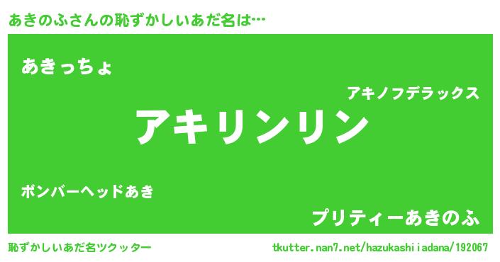 | 意味不明あだ名 | 『とにかく怪しいあきのふ』 |