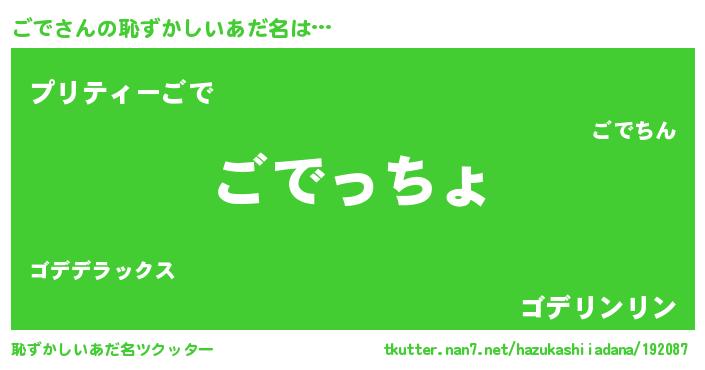 | ヘコむあだ名 | 『つくし』『ごでにゅー』『ごでっ子』 |