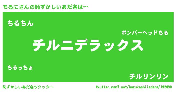 | ヘコむあだ名 | 『ちるに(苦笑)』『ちるぷりん』 |