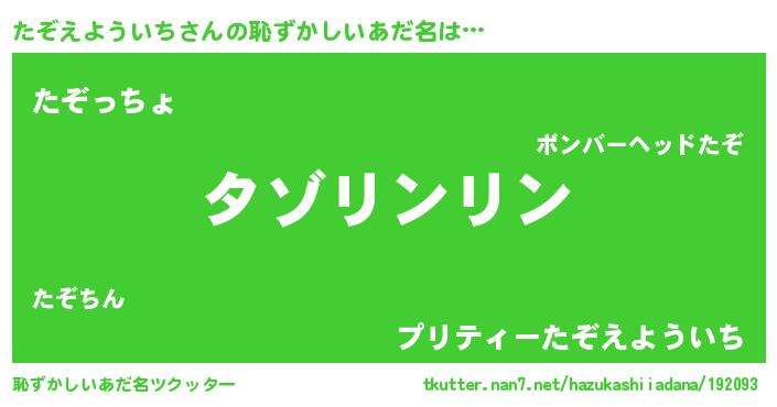 | ポケモン風あだ名 | 『タゾゴンZ』『ヒタゾエヨウイチ』 |