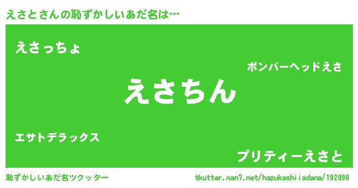 | 意味不明あだ名 | 『永久保存えさと』『えさとフォーエバー』 |