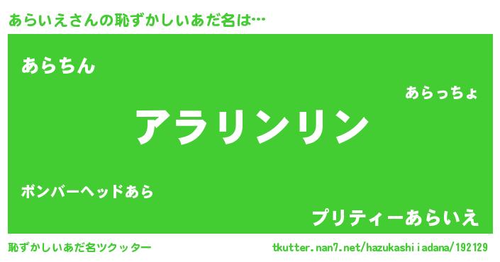 | 意味不明あだ名 | 『とにかく怪しいあらいえ』 |