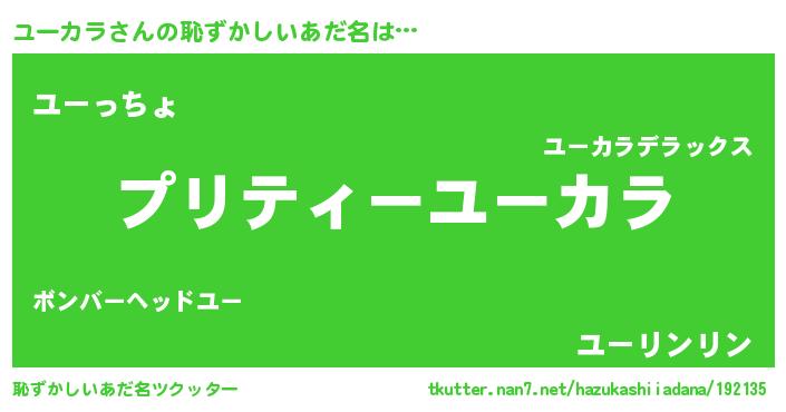 | ポケモン風あだ名 | 『ユーチュウ』『ユーカダネ』 |