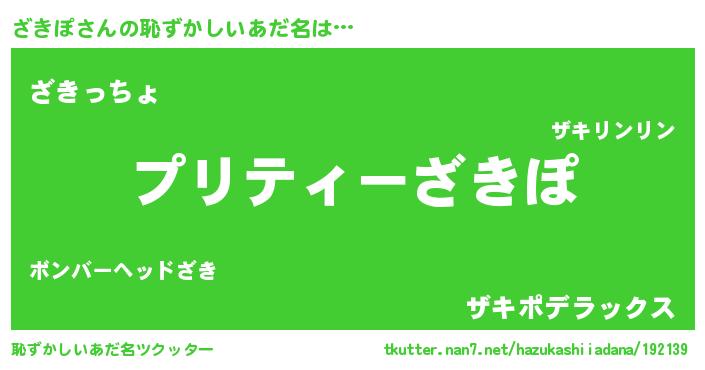 | 男性向けラノベタイトル風あだ名 | 『ざきぽの憂鬱』『魔法科高校のざきぽ』 |