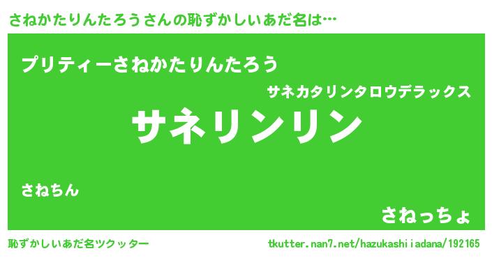 | 意味不明あだ名 | 『とにかく怪しいさねかたりんたろう』 |