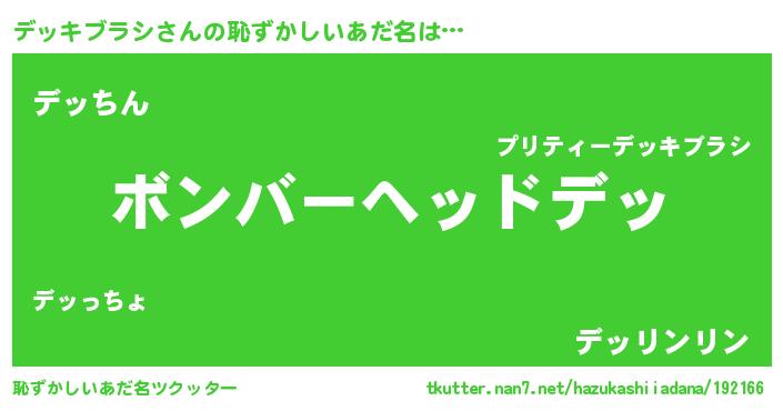 | ヘコむあだ名 | 『デッキブラシ(小並感)』『デッお』 |
