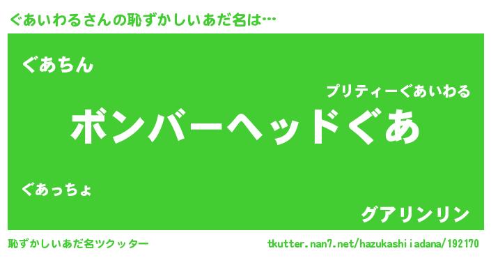 | ヘコむあだ名 | 『ぐあいわる(笑)』『ぐあ太郎』 |