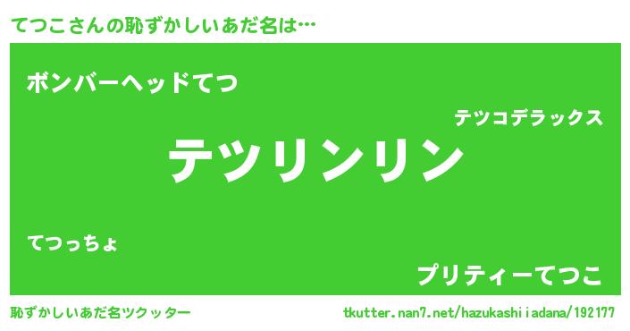 | ヒーロー風カッコイイあだ名 | 『魔戒騎士テツ』『愛の使者てつこ』 |