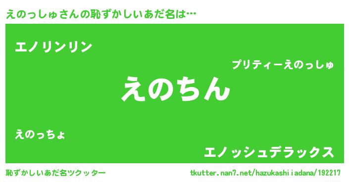 | 意味不明あだ名 | 『住所不定無職えのっしゅ(6歳)』 |