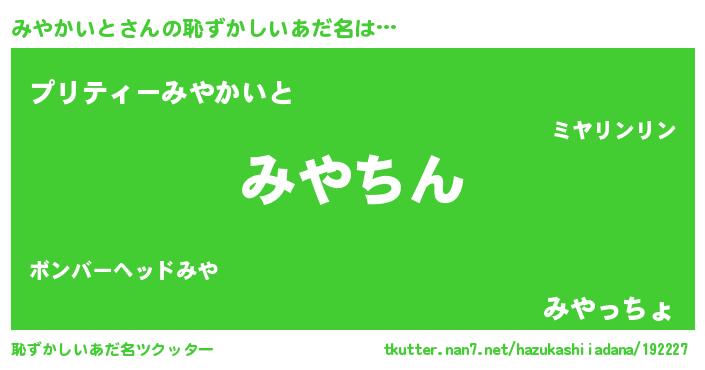 | 意味不明あだ名 | 『永久保存みやかいと』 |