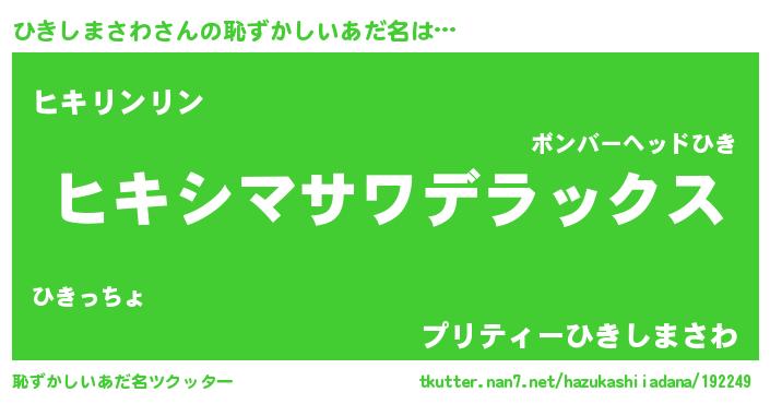 | 意味不明あだ名 | 『住所不定無職ひきしまさわ(39歳)』 |