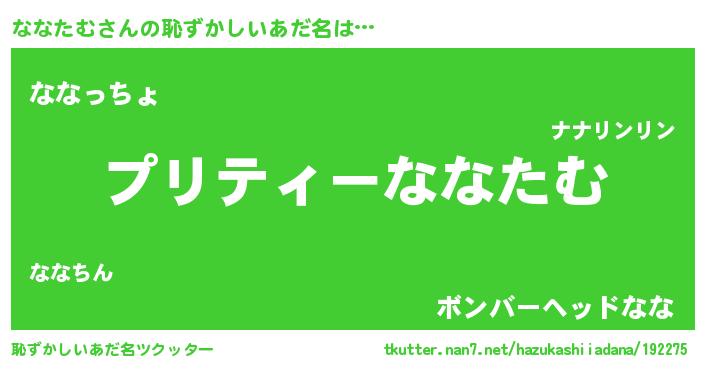 | ヒーロー風カッコイイあだ名 | 『スーパーナナタム』『仮面ナナダー』 |