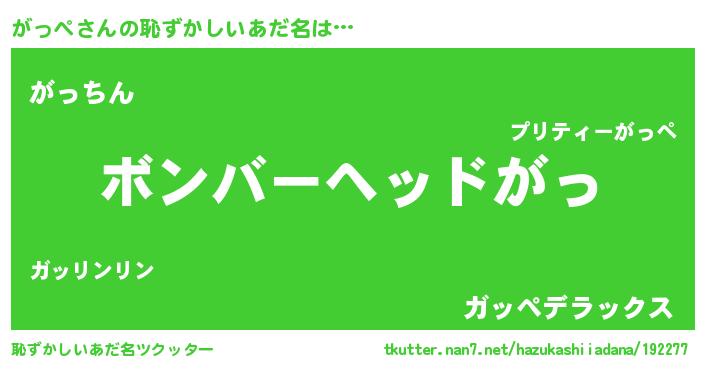 | 意味不明あだ名 | 『住所不定無職がっぺ(43歳)』『自称がっぺ』 |