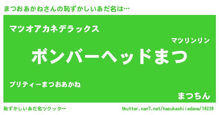 | ヘコむあだ名 | 『まつおあかね(爆)』『まつお』 |