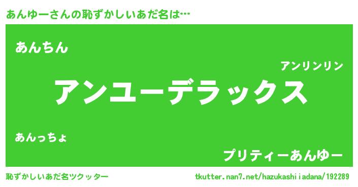 | 意味不明あだ名 | 『自称あんゆー』『永久保存あんゆー』 |