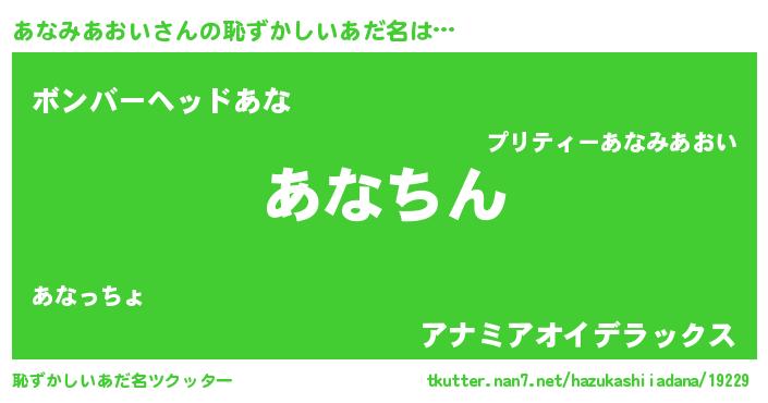 | 意味不明あだ名 | 『永久保存あなみあおい』 |