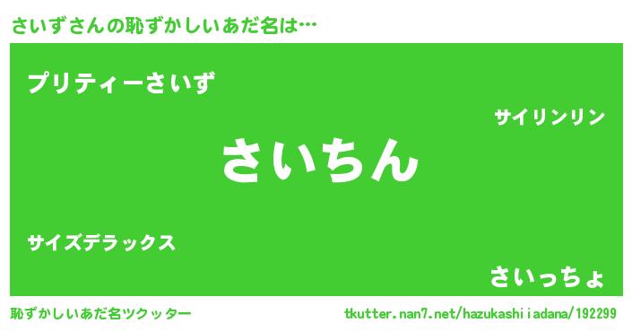 | 男性向けラノベタイトル風あだ名 | 『さいずという概念が存在しない退屈な世界 』 |