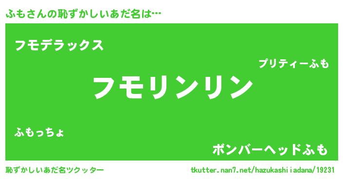 | ポケモン風あだ名 | 『ヒフモ』『フモセウス』『フモゴンZ』 |